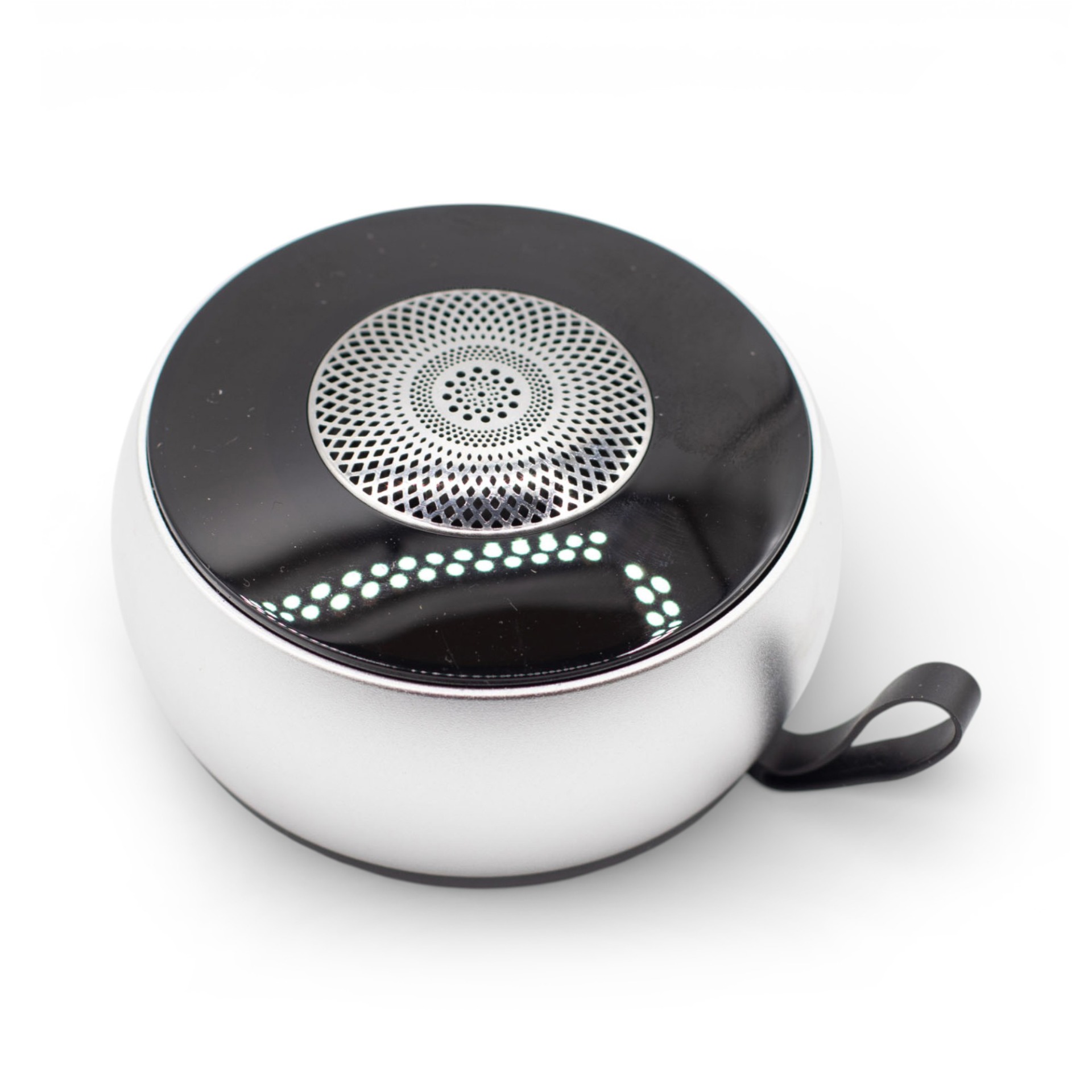 Az ezüst színű világító mini mandala hangszóró modern megjelenésével és finom fényhatásával harmonikus hangulatot teremt. Letisztult formája és visszafogott színvilága elegáns, harmoniát hozó kiegészítővé teszi.
