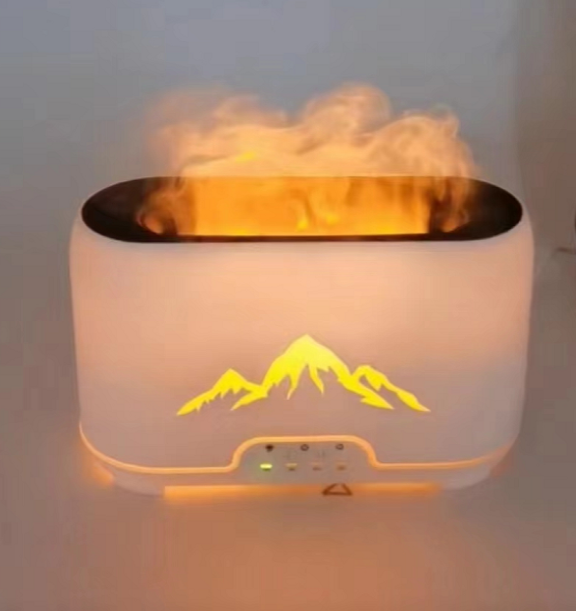 A fény és a kiáramló pára természetes módon hozza létre a lángoló fényhatást.